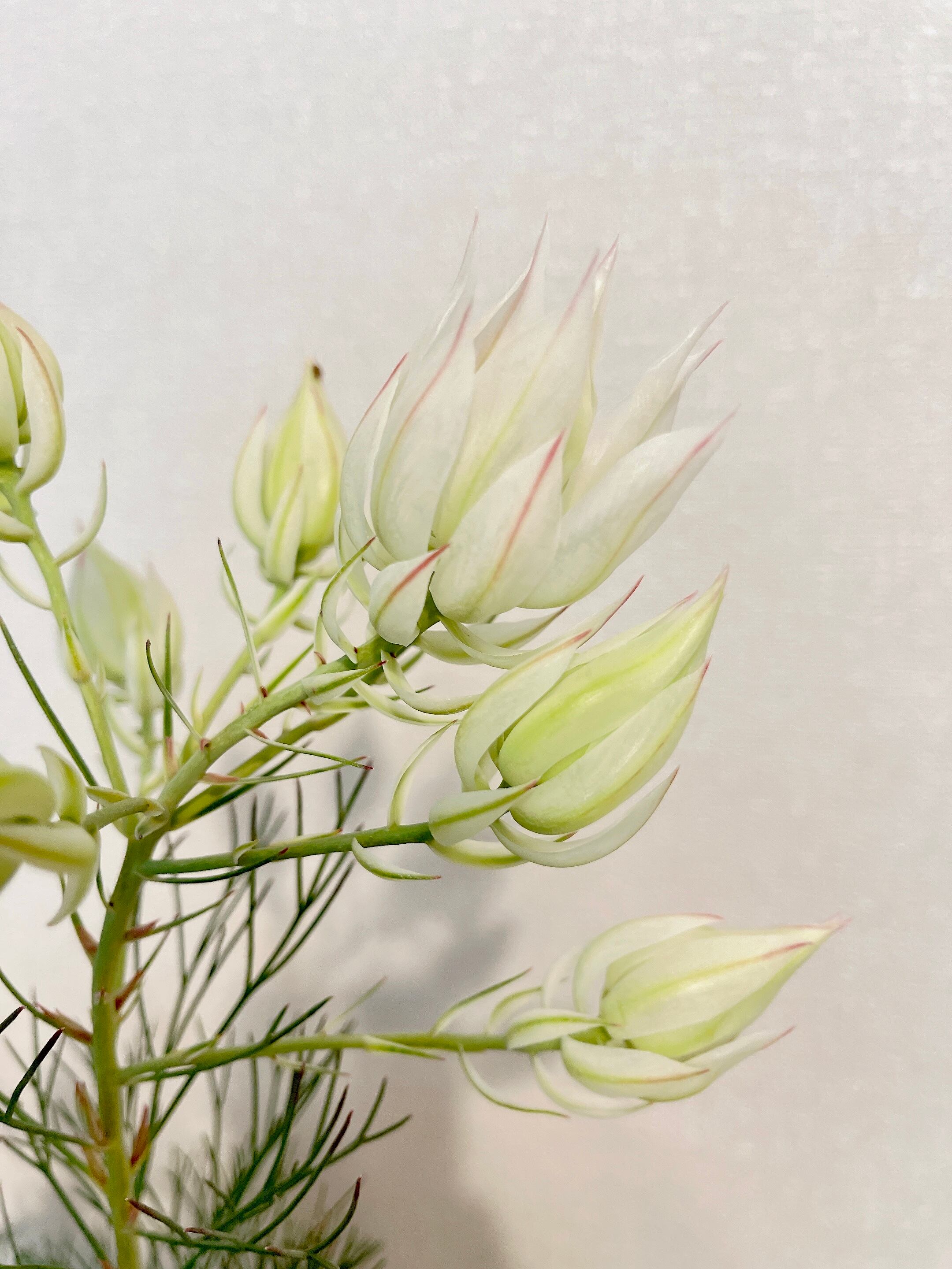 羽根の様な美しい白い花びらに、真ん中がほのかな