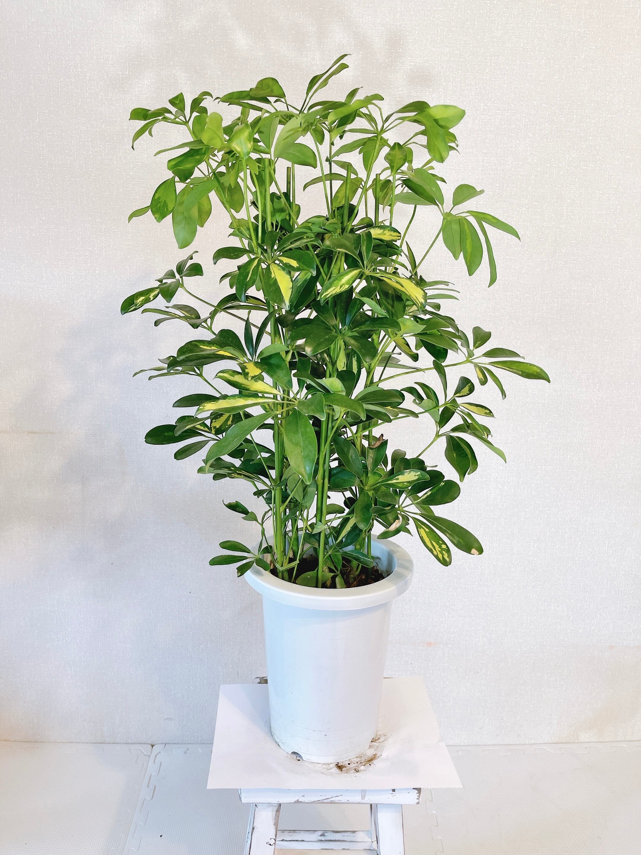 美しい形状と斑入りの葉が魅力のシェフレラ。