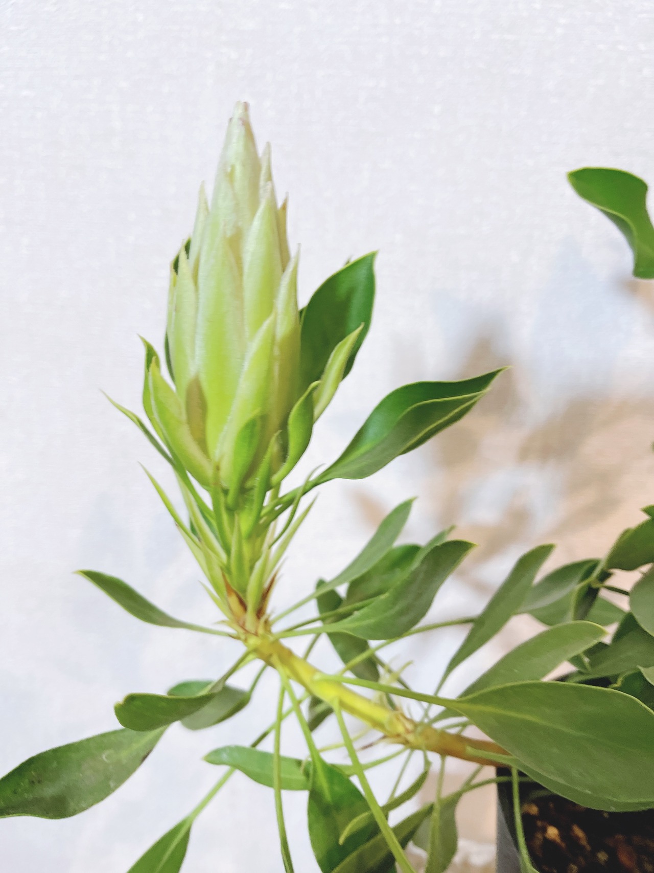 プロテア ’スパイキーホワイト’は、名前の通り白い花を咲かせる、とても希少な花です。